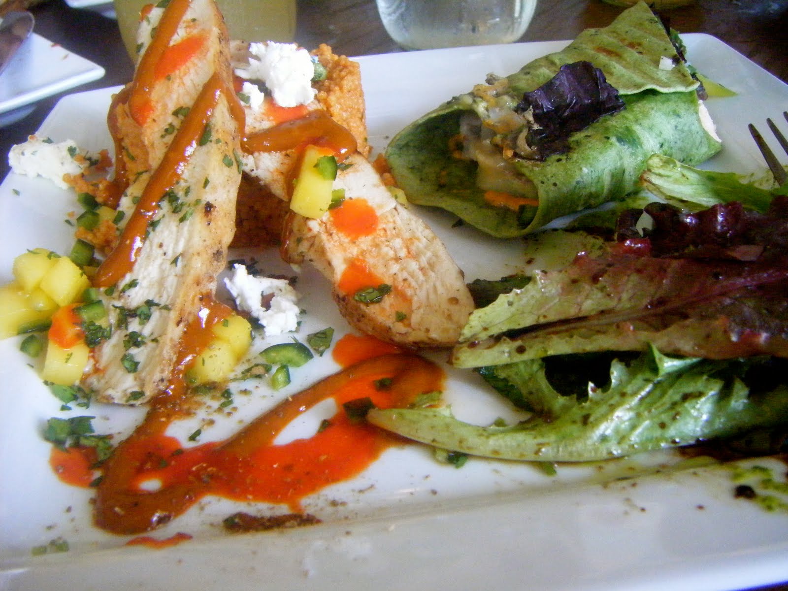 We shared the Mexico City Couscous (Red Chili couscous, grilled chicken, poblano peppers, cilantro, goat cheese, mango and lime juice) and the Sparky Wrap (turkey breast, basil aioli, dried cranberries, brie, roasted walnuts and baby greens in a spinach wrap and then toasted).
